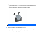 4. Masukkan ujung kabel pengaman ke dalam kunci (1), kemudian tekan tombol (2) untuk menahan
