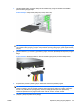 2-26 Iliustracija 5,25 colių diskų įrenginio įdėjimas į Minitower (viršus) ir darbastalį (apačia)