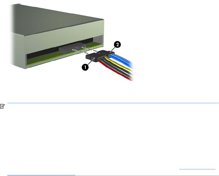 9. Podłącz kabel zasilający (1) i kabel transferu danych (2) do złączy z tyłu napędu optycznego lub