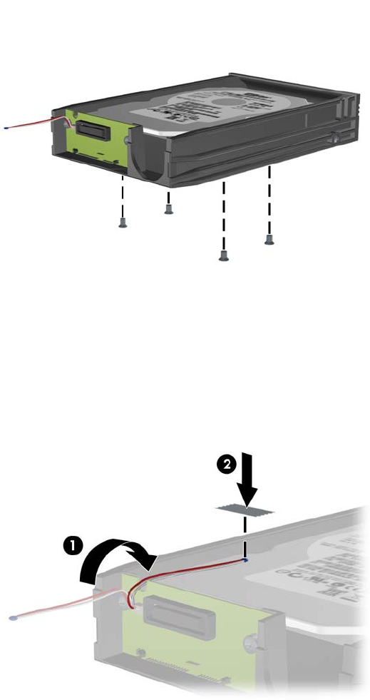 8. Umieść czujnik termiczny u góry dysku twardego w takim miejscu, aby nie zakrywał etykiety (1) i