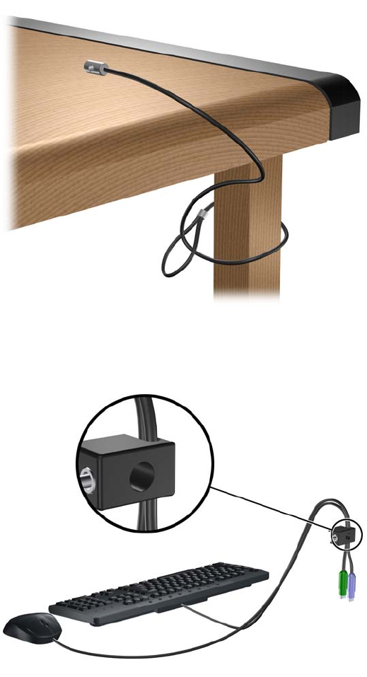 2. Przewlecz kable myszy i klawiatury przez blokadę.