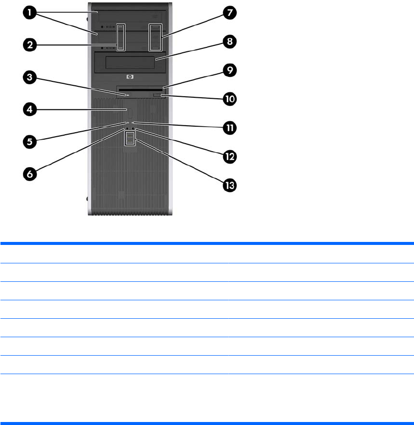 2 Aktivitetslampor på optisk enhet 9 Aktivitetslampa för diskettenhet (tillval)