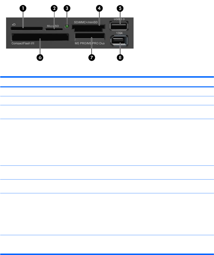 Tabell 1-2 Komponenter till mediekortläsaren