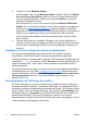 ● Désinstallez tout logiciel que vous venez d’installer. ● Restaurez le système à partir du jeu de disques de récupération que vous avez créé ou restaurez le système sur sa configuration usine d’origine dans HP Backup and Recovery Manager. ATTENTION : La restauration du système effacera toutes les données sur le disque dur. Assurez-vous de sauvegarder tous les fichiers de données avant d’exécuter le processus de restauration.
