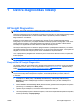 Paroles tiltslēga atiestatīšana Lai atspējotu ieslēgšanas vai iestatījuma paroles līdzekļus vai notīrītu tās, rīkojieties šādi: 1. Beidzējiet operētājsistēmu, izslēdziet datoru un visas ārējās ierīces un atvienojiet strāvas vadu no kontaktligzdas. 2. Pēc tam, kad strāvas vads ir atvienots, vēlreiz nospiediet strāvas pogu, lai atbrīvotu sistēmu no uzkrātās strāvas.