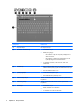 Komponenter på fremsiden Komponent Beskrivelse (1) ● Blinkende turkis: Harddisken eller den optiske stasjonen er i bruk. ● Gul: HP 3D DriveGuard har midlertidig parkert harddisken.
