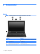 Innhold 1 Identifisere maskinvare 2 Komponenter Skjerm .................................................................................................................................................. 2 Komponenter på oversiden .................................................................................................................. 3 Pekeutstyr ............................................................................................................................ 3 Lamper ....................