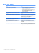 3 Menüs in Computer Setup Die Menütabellen in diesem Abschnitt bieten einen Überblick über die Optionen von Computer Setup. HINWEIS: Möglicherweise werden nicht alle der in diesem Kapitel aufgeführten Computer SetupMenüoptionen von Ihrem Computer unterstützt.