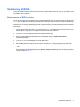 Opdatering af BIOS Hvis du vil opdatere BIOS, skal du først kontrollere, hvilken BIOS-version du har nu, og derefter hente og installere den nye BIOS. Bestemmelse af BIOS-version Du kan få vist oplysninger om BIOS-version (også kaldet ROM-dato og System-BIOS) ved at trykke på fn+esc (hvis du allerede har startet Windows) eller ved bruge Computer Setup (Computeropsætning). Følg disse trin for at bruge hjælpeprogrammet Computer Setup (Computeropsætning) til at få vist BIOSoplysninger: 1.