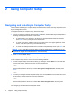 2 Using Computer Setup Navigating and selecting in Computer Setup The information and settings in Computer Setup are accessed from the File, Security, Diagnostics, and System Configuration menus. To navigate and select in Computer Setup, follow these steps: 1. Turn on or restart the computer, and then press esc while the “Press the ESC key for Startup Menu” message is displayed at the bottom of the screen.