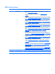 Diagnostics menu Select To do this System Diagnostics Menu ● 120 Chapter 5 Computer Setup System Information—Displays the following information: ◦ Identification information for the computer and the batteries in the system. ◦ Specification information for the processor, cache and memory size, system ROM, video revision, and keyboard controller version. ● Start-up Test—Verifies the system components needed for starting the computer. ● Run-In Test—Runs a comprehensive check on system memory.