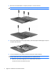 16. Riposizionare le viti sulla tastiera. Il computer presenta 2 o 3 viti da riposizionare. NOTA: Fare riferimento all'illustrazione che più corrisponde al computer utilizzato. 17. Riportare il coperchio degli interruttori in posizione. 18. Chiudere il display del computer. 19. Reinserire le 2 viti nella parte posteriore del computer.