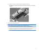 c. Facendo attenzione a esercitare la stessa pressione su entrambi i bordi destro e sinistro del modulo di memoria, spingerlo con delicatezza verso il basso (3) fino a far scattare i gancetti di fissaggio. 15. Riposizionare la tastiera (1) nell'alloggiamento, quindi farla scorrere in posizione (2).