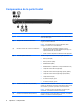 (1) Pestillos de liberación de la batería (2) Liberan la batería de su compartimento.