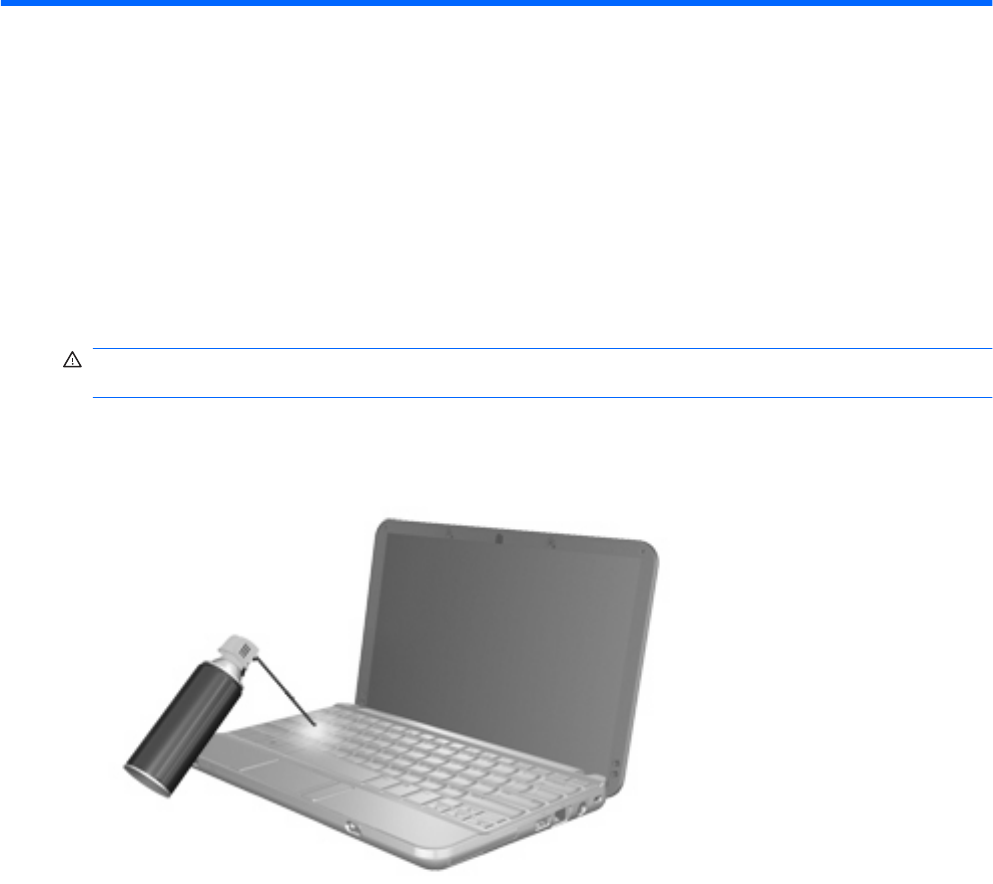 som kan samle seg under tastene. En boks med trykkluft og blåserør kan brukes til å blåse luft rundt
