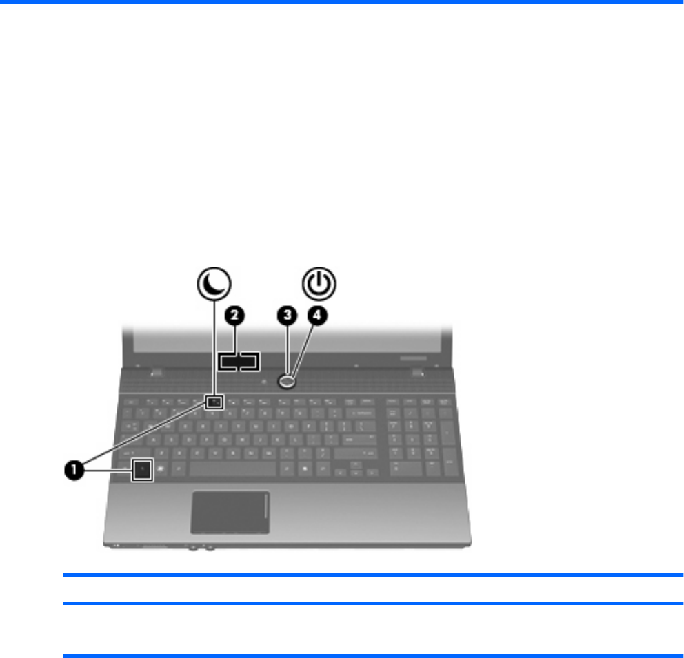 I nedanstående bild och tabell identifieras och beskrivs var strömkontroller och lampor är placerade.