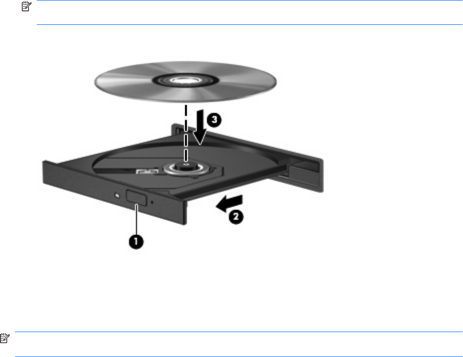 ドライブのフロント パネルにあるリリース ボタン(1)を押して、ディスク トレイが少し押し
