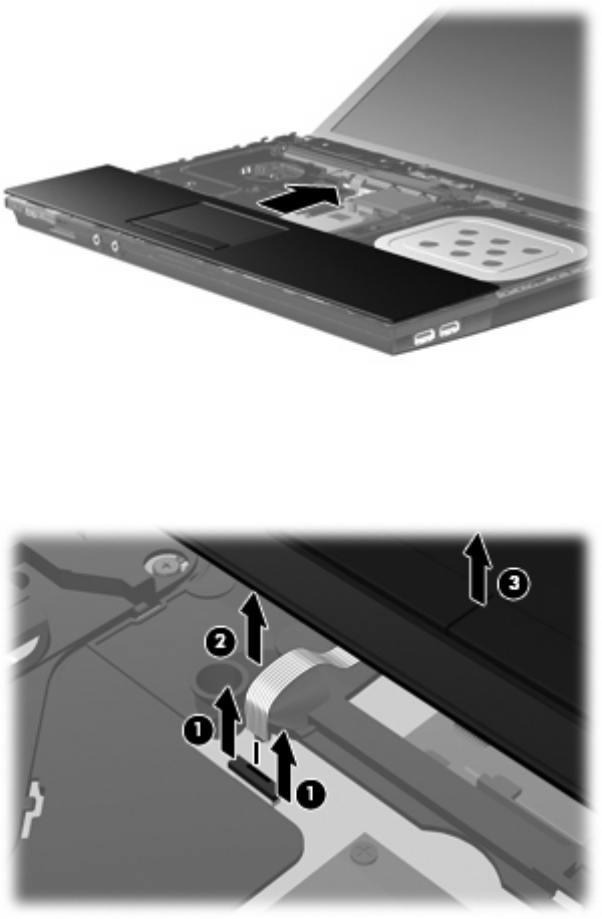 タッチパッド ケーブルが接続されている ZIF コネクタの固定を解除し(1)、タッチパッド ケー