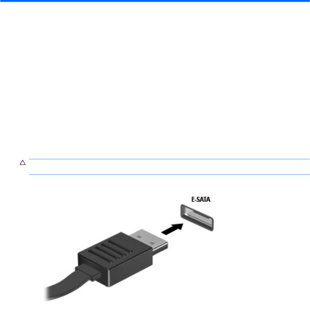 VIKTIGT: För att förhindra att eSATA-portkontakterna skadas bör du använda så lite kraft som möjligt