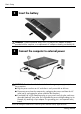 Basic Setup 2 Insert the battery To reduce potential safety issues, use only the AC adapter or battery Å WARNING: provided with the computer, or a replacement AC adapter or battery provided by HP. 3 Connect the computer to external power To reduce the risk of electric shock or damage to your equipment, observe Å WARNING: these practices: ■ Plug the power cord into an AC outlet that is easily accessible at all times.