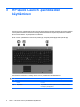 2 Näppäimistön käyttäminen Pikanäppäimien käyttäminen Pikanäppäimet ovat fn-näppäimen (1) ja joko esc-näppäimen (2) tai jonkin toimintonäppäimen (3) yhdistelmiä. Näppäimissä f3, f4 ja f8 - f11 näkyvät kuvakkeet ilmaisevat pikanäppäinten toiminnon. Pikanäppäinten toiminnot kuvataan seuraavissa osissa.