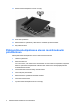 13. Kiristä muistimoduulipaikan kannen ruuvi (3). 14. Aseta akku paikalleen. 15. Käännä tietokone ylösalaisin ja liitä ulkoinen virtalähde ja ulkoiset laitteet. 16. Käynnistä tietokone. Päämuistimoduulipaikassa olevan muistimoduulin päivittäminen Päivitä päämuistimoduulipaikassa oleva muistimoduuli seuraavasti: 1. Tallenna työtiedostot. 2. Sammuta tietokone. Jos et ole varma, onko tietokoneen virta katkaistu vai onko tietokone lepotilassa, käynnistä tietokone painamalla virtapainiketta.