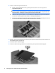 Einsetzen oder Ersetzen eines Speichermoduls im Speichererweiterungssteckplatz Um ein Speichermodul in den Erweiterungssteckplatz einzusetzen, führen Sie folgende Schritte aus: 1. Speichern Sie Ihre Daten. 2. Schalten Sie den Computer aus, und schließen Sie das Display. Wenn Sie sich nicht sicher sind, ob der Computer ausgeschaltet ist oder sich im Ruhezustand befindet, schalten Sie ihn durch Drücken der Betriebstaste ein. Fahren Sie ihn dann über das Betriebssystem herunter. 3.