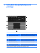 1 Utilisation des périphériques de pointage Composant Description (1) Bouton de pointage* Déplace le pointeur et sélectionne ou active des éléments à l'écran. (2) Touche gauche du bouton de pointage* Fonctionne comme le bouton gauche d'une souris externe. (3) Pavé tactile* Déplace le pointeur et sélectionne ou active des éléments à l'écran. (4) Bouton gauche du pavé tactile* Fonctionne comme le bouton gauche d'une souris externe.