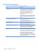 Modul Hovedfunksjoner Embedded Security (Innebygd sikkerhet) for HP ProtectTools (kun på enkelte modeller) ● Embedded Security (Innebygd sikkerhet) bruker en innebygd TPM-sikkerhetsbrikke (Trusted Platform Module) for å beskytte mot uautorisert tilgang til sensitive brukerdata eller legitimasjon som er lagret lokalt på en datamaskin. ● Med Embedded Security (Innebygd sikkerhet) kan man opprette en personlig, sikker stasjon (PSD), som er nyttig for å beskytte personlig fil- og mappeinformasjon.