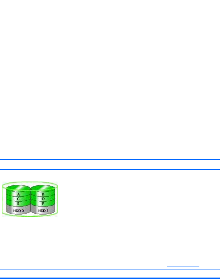 RAID-tilstande, der understøttes af bærbare HP Business-computere, omfatter RAID 0, RAID 1 og