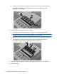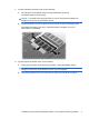 Dodajanje ali zamenjava pomnilniškega modula v reži modula za razširitev pomnilnika OPOZORILO! Da zmanjšate možnost električnega udara ali poškodbe opreme, pred nameščanjem pomnilniškega modula izključite napajalni kabel in odstranite vse akumulatorje. POZOR: Elektrostatična razelektritev lahko poškoduje elektronske komponente. Preden začnete kateri koli postopek, se razelektrite, tako da se dotaknete ozemljenega kovinskega predmeta.