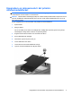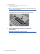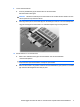 Uppgradera en minnesmodul i det primära minnesmodulsfacket VARNING: Minska risken för elstötar och skada på utrustningen genom att dra ur nätsladden och ta ut alla batterier innan du sätter i en minnesmodul. VIKTIGT: Elektrostatiska urladdningar (ESD) kan orsaka skada på elektroniska komponenter. Se till att du är urladdad från statisk elektricitet genom att röra vid ett jordat metallföremål innan du rör vid datorns komponenter. Så här uppgraderar du en minnesmodul i det primära minnesmodulsfacket: 1.