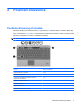 Nastavení předvoleb ukazovacího zařízení Pro zpřístupnění Vlastností myši vyberte Start > Zařízení a tiskárny. Poté klepněte pravým tlačítkem myši na zařízení, které reprezentuje váš počítač a vyberte Nastavení myši. Chcete-li upravit nastavení polohovacích zařízení, například konfiguraci tlačítka, rychlost klepnutí nebo možnosti kurzoru, použijte Vlastnosti myši v systému Windows®. Použití zařízení TouchPad Chcete-li pohnout ukazatelem, posunujte prst po povrchu zařízení TouchPad v požadovaném směru.