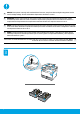 EN Connect power cord to AC outlet. Turn on printer. NOTICE: Power source should match voltage rating of 100-240 Vac and 50/60 Hz on printer label. Only use power cord that came with printer. FR Branchez le câble d'alimentation à la prise secteur. Mettez l'imprimante sous tension. REMARQUE : La source d'alimentation doit correspondre à la tension nominale de 100-240 V.C.C. et aux 50/60 Hz indiqués sur l'étiquette de l'imprimante. Utilisez uniquement le câble d'alimentation fourni avec l'imprimante.