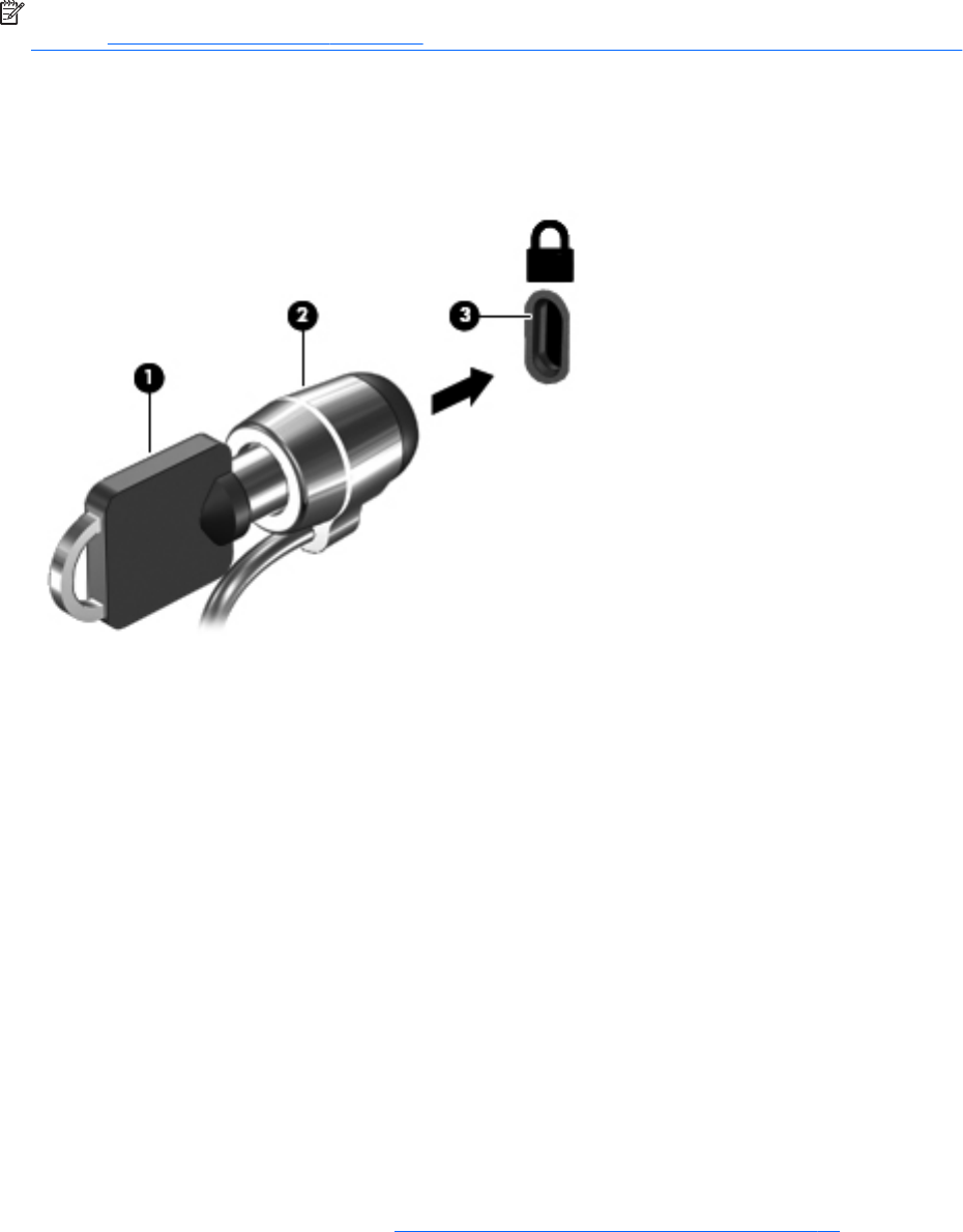 3. Masukkan kunci kabel ke dalam slot kabel pengaman pada komputer (3), lalu kuncikan kunci yang sudah