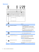 (4)   Зона на тъчпада Разчита жестовете на пръста, за да премести показалеца