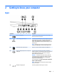 (4) Webcam light (select products only) On: The webcam is in use.