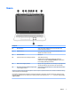 (4) Lysdiode for webcam (kun udvalgte produkter) Tændt: Webcam er i brug.