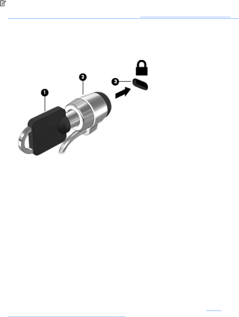 3. Stecken Sie das Kabelschloss in die Önung für die Diebstahlsicherung am Computer (3), und
