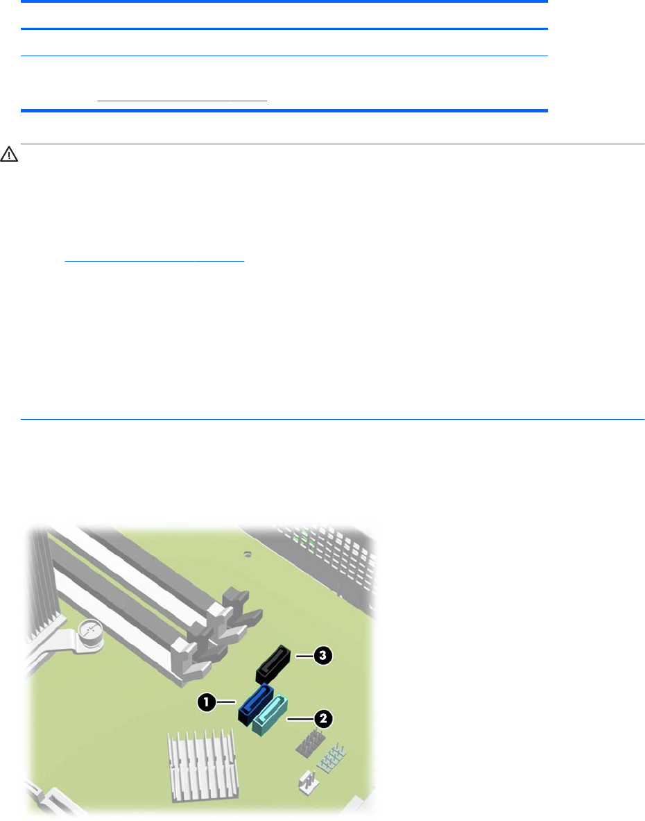 Lai identificētu sistēmas plates diskdziņa savienojumus, skatiet attēlu un tabulu.