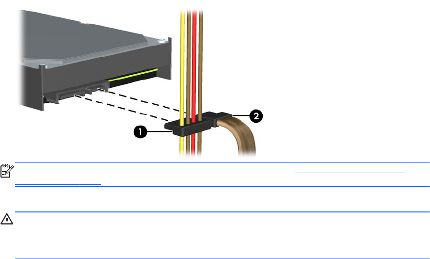 Attēls 2-57 Sekundārā cietā diskdziņa strāvas un datu kabeļu pievienošana