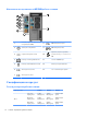 5 USB 2.0 портове (2, черни) 11 Конектор на захранващия кабел