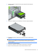 6. Húzza ki a tápkábelt (1) és az adatkábelt (2) a merevlemez-meghajtó hátoldalából.
