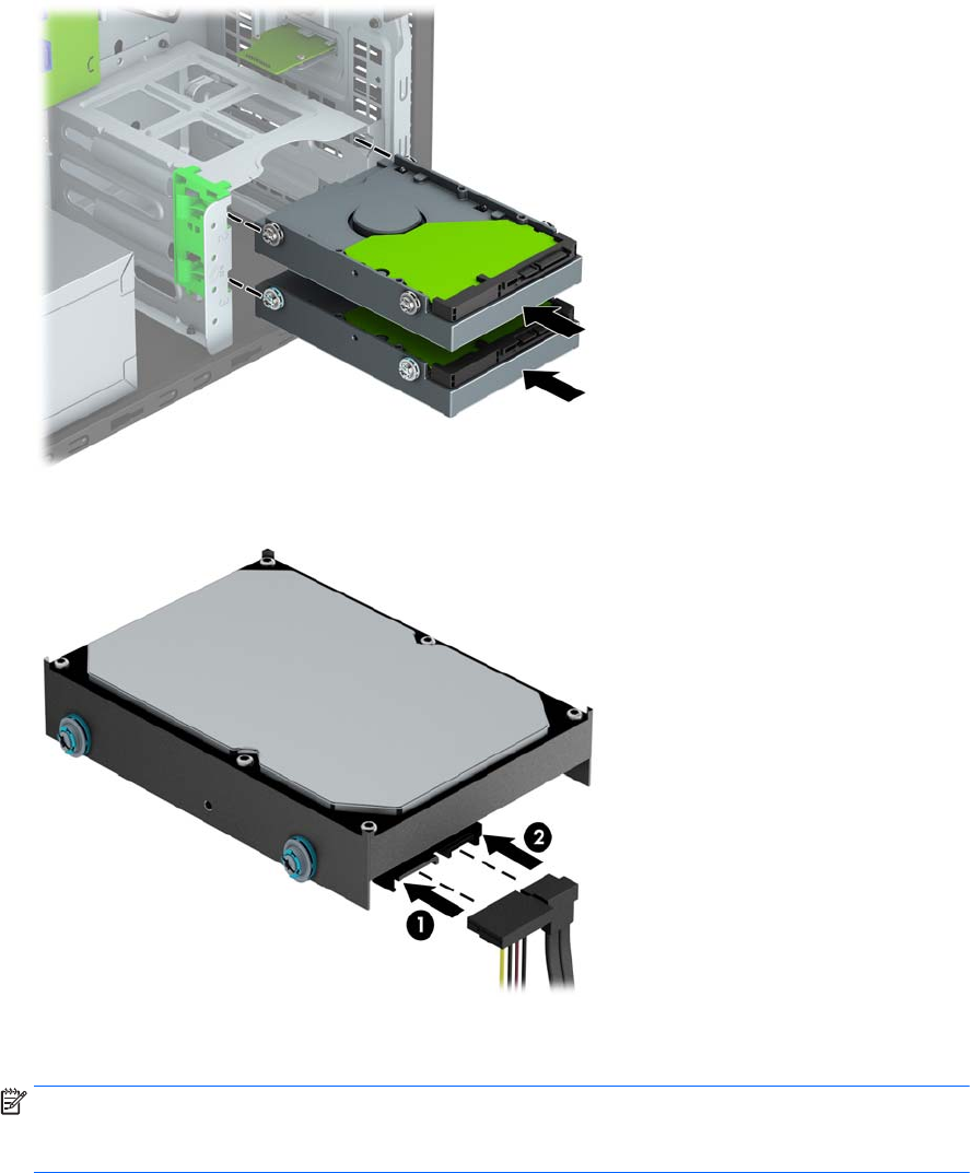 9. Priključite kabel za napajanje (1) i podatkovni kabel (2) na stražnju stranu tvrdog diska.
