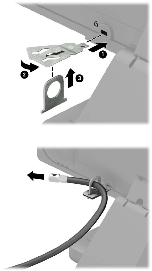 5. Provucite sigurnosni kabel kroz sigurnosnu vodilicu ugrađenu na monitoru.