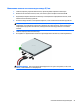 6. Отсоедините от задней панели оптического дисковода кабель питания (1) и кабель данных (2).