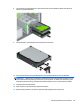 9. Liitä virtakaapeli (1) ja datakaapeli (2) kiintolevyaseman takaosaan.