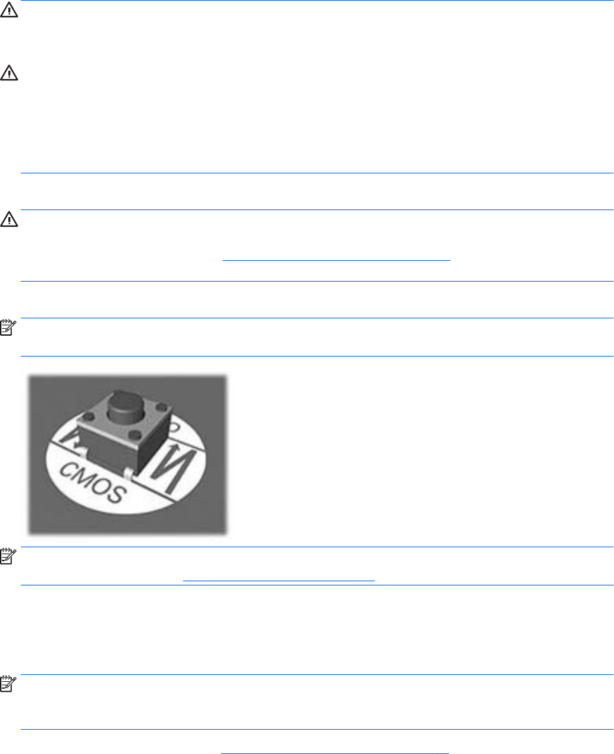 NOTE: For assistance locating the CMOS button and other system board components, see the system