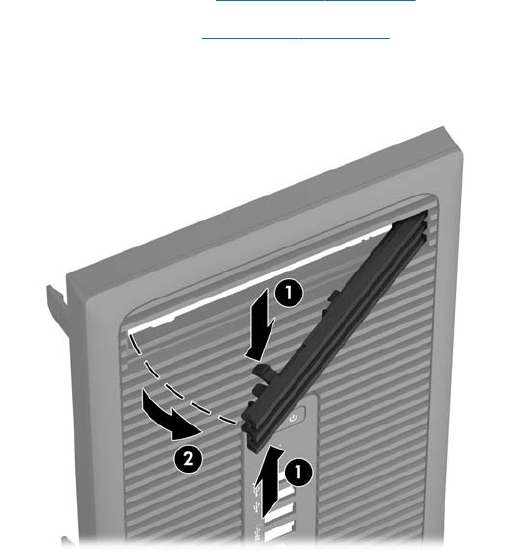 3. To remove the bezel blank, press upward on the bottom tab and press downward on the top tab on the