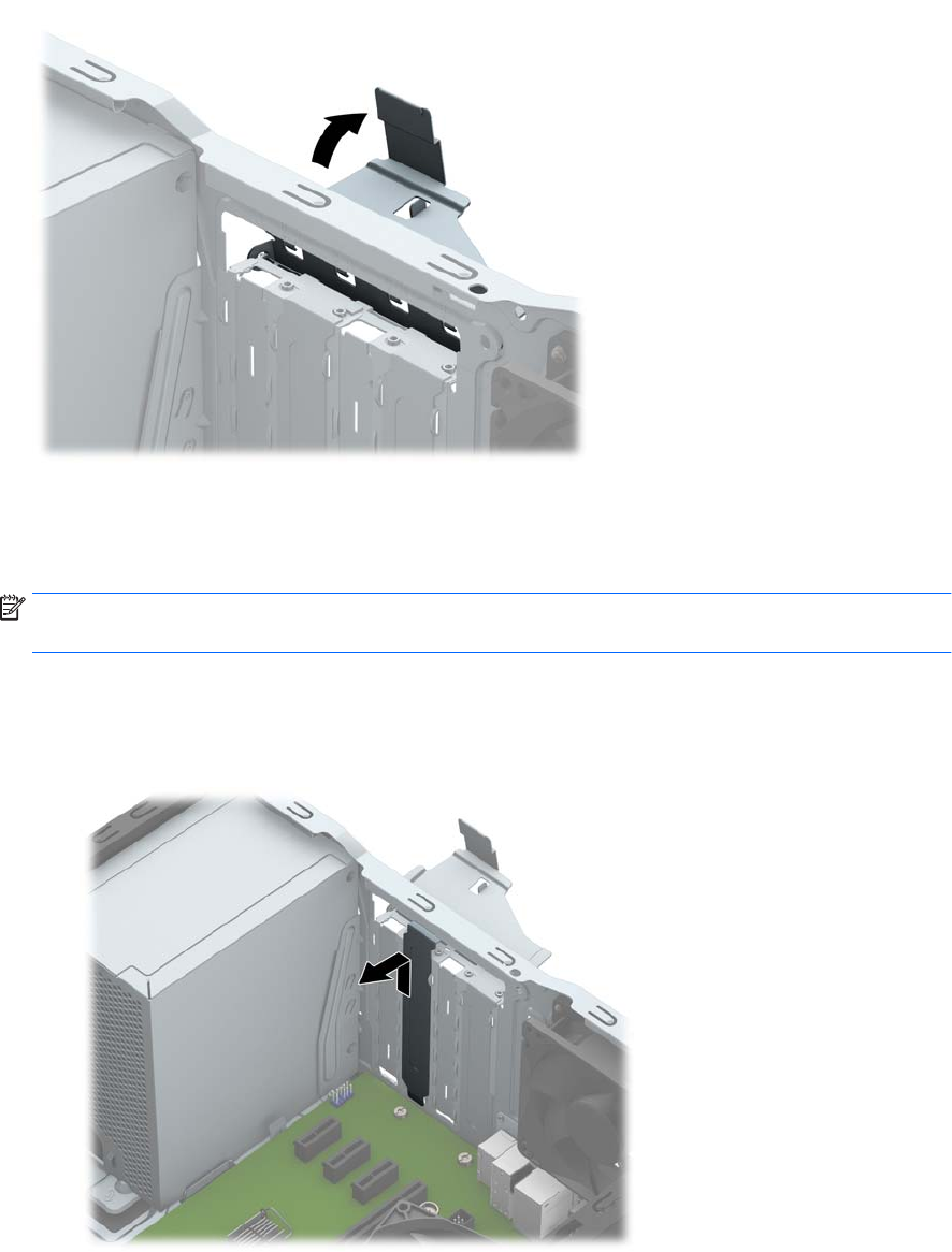 3. Release the slot cover retention latch that secures the slot covers by lifting the tab on the latch and
